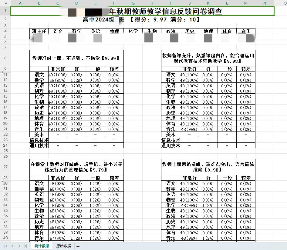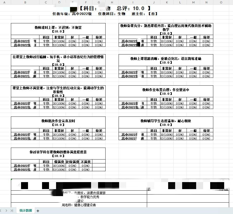 根据每位学生的问卷结果,汇总生成每个班级、每个教师的统计结果并量化评分